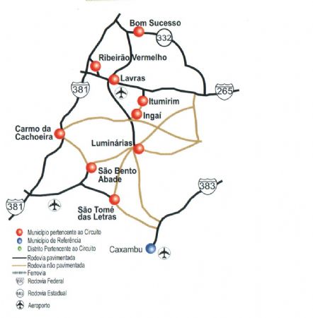 BR-381 (Fernão Dias) sentido São Paulo. Após passar pela cidade de Carmo da Cachoeira pegar o retorno, passar pelo posto Novo Rio, percorrer aproximadamente mais 1 km e entrar à direita, seguindo por mais um trecho de aproximadamente 20 km, chegando em São Bento Abade. Nos 20 km finais da rota (rodovia Fernão Dias – São Bento Abade) a estrada é de terra, mas em boas condições de tráfego. Se preferir utilizar somente rodovias estradas pavimentadas, é necessário seguir até a cidade de Três Corações e de lá pegar sentido São Bento Abade pela MG-862, aumentando para 320 km o percurso.